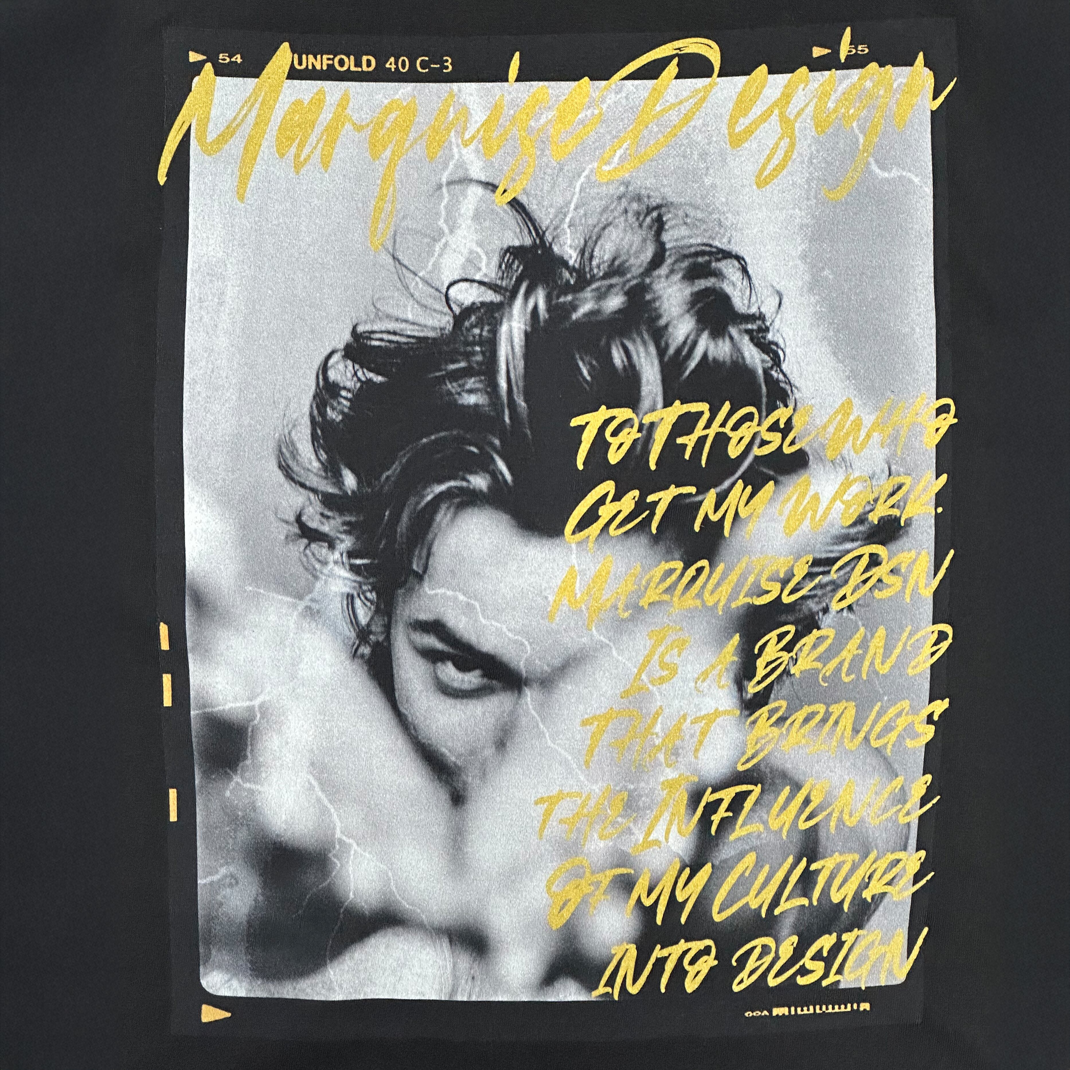 独自のレシピによりシルクスクリーンで表現される写真分解の高解像度ドットをデザインとして作成し、奥行きのある濃淡をフォトで表現しながら自由なカラーリングを組み合わせることができるガーメントプリンタの特性を駆使した作品